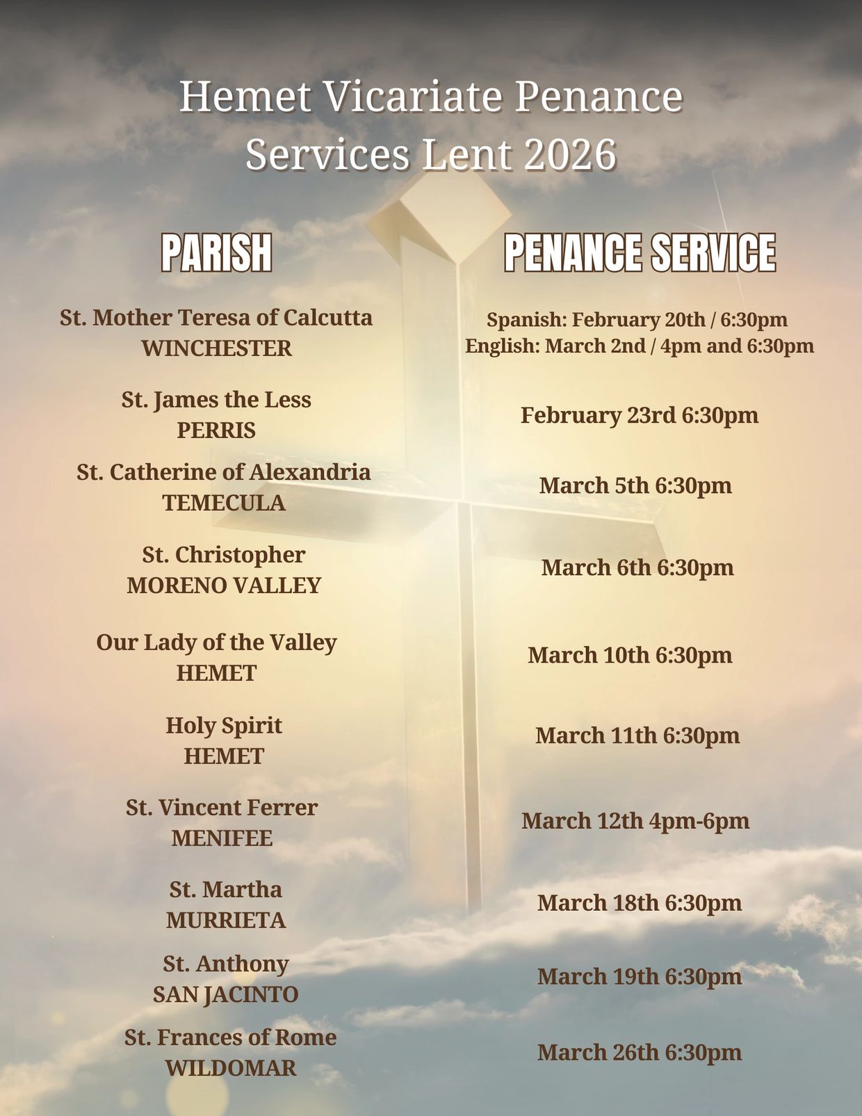 Lenten Penance Services